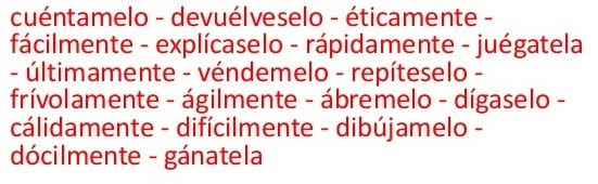 Sobreesdrújula: son aquellas palabras que tienen su sílaba tónica una antes que la antepenúltima. Estas palabras siempre llevan acento.